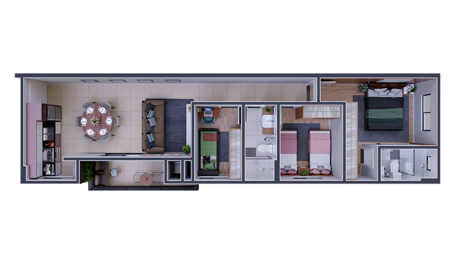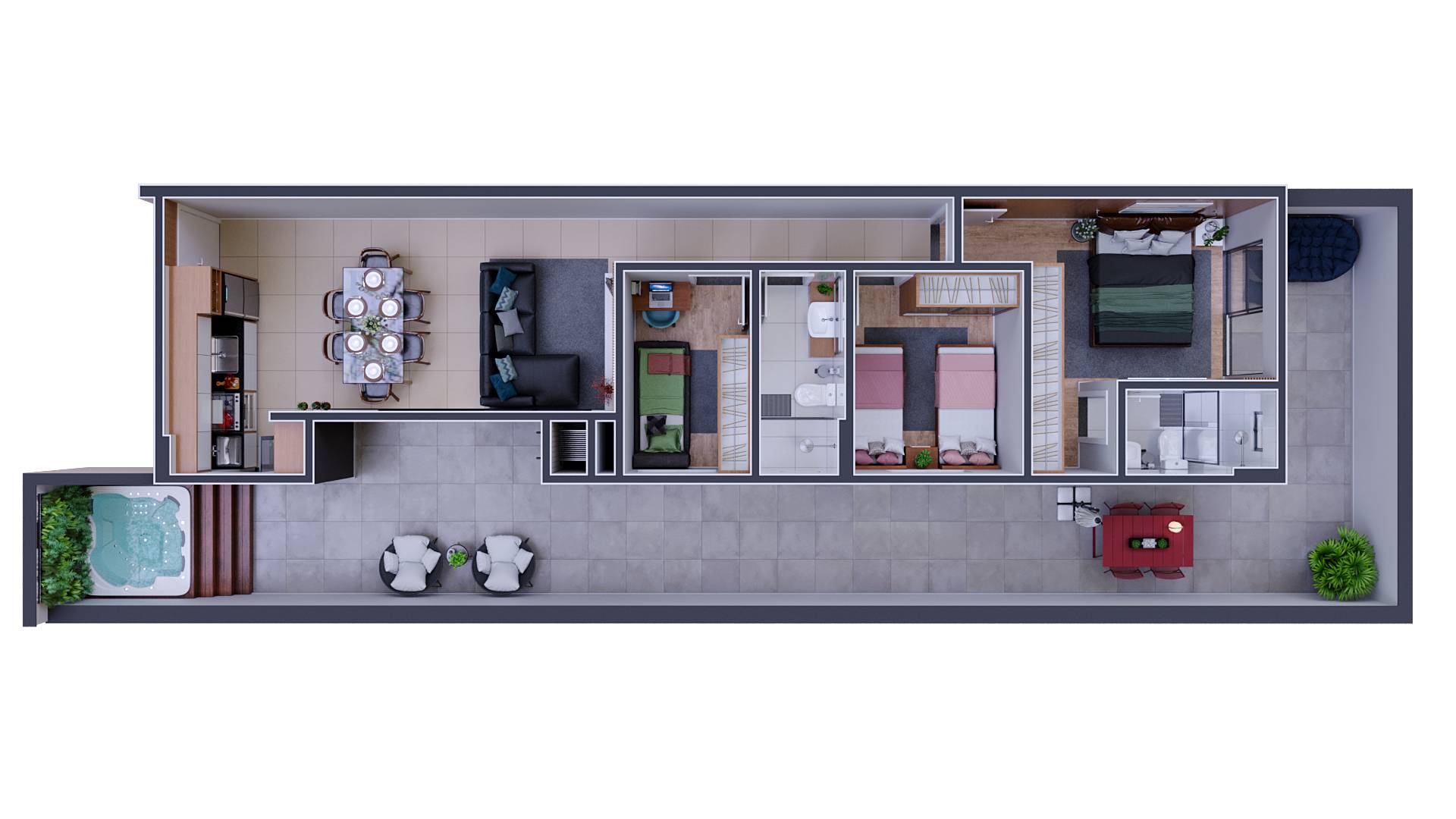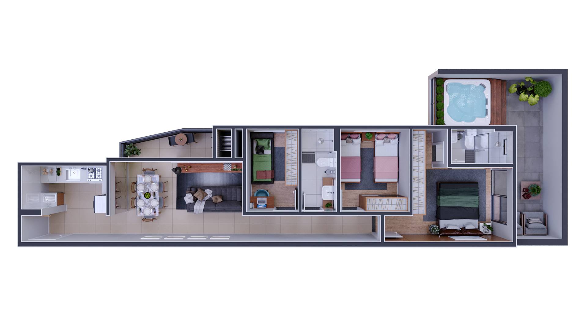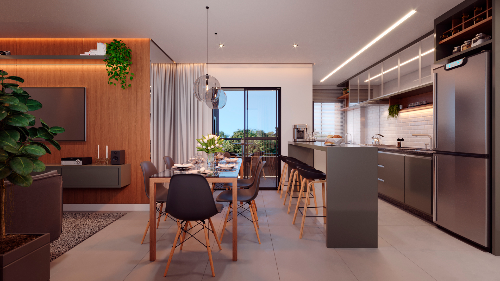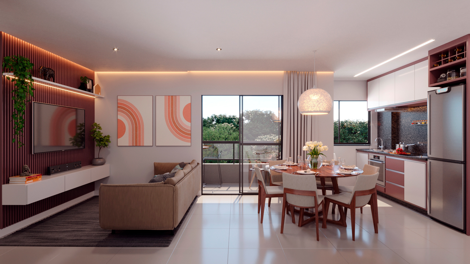 4 Apartamentos com 3 quartos (1 suíte), sacada com churrasqueira e 1 vaga de garagem