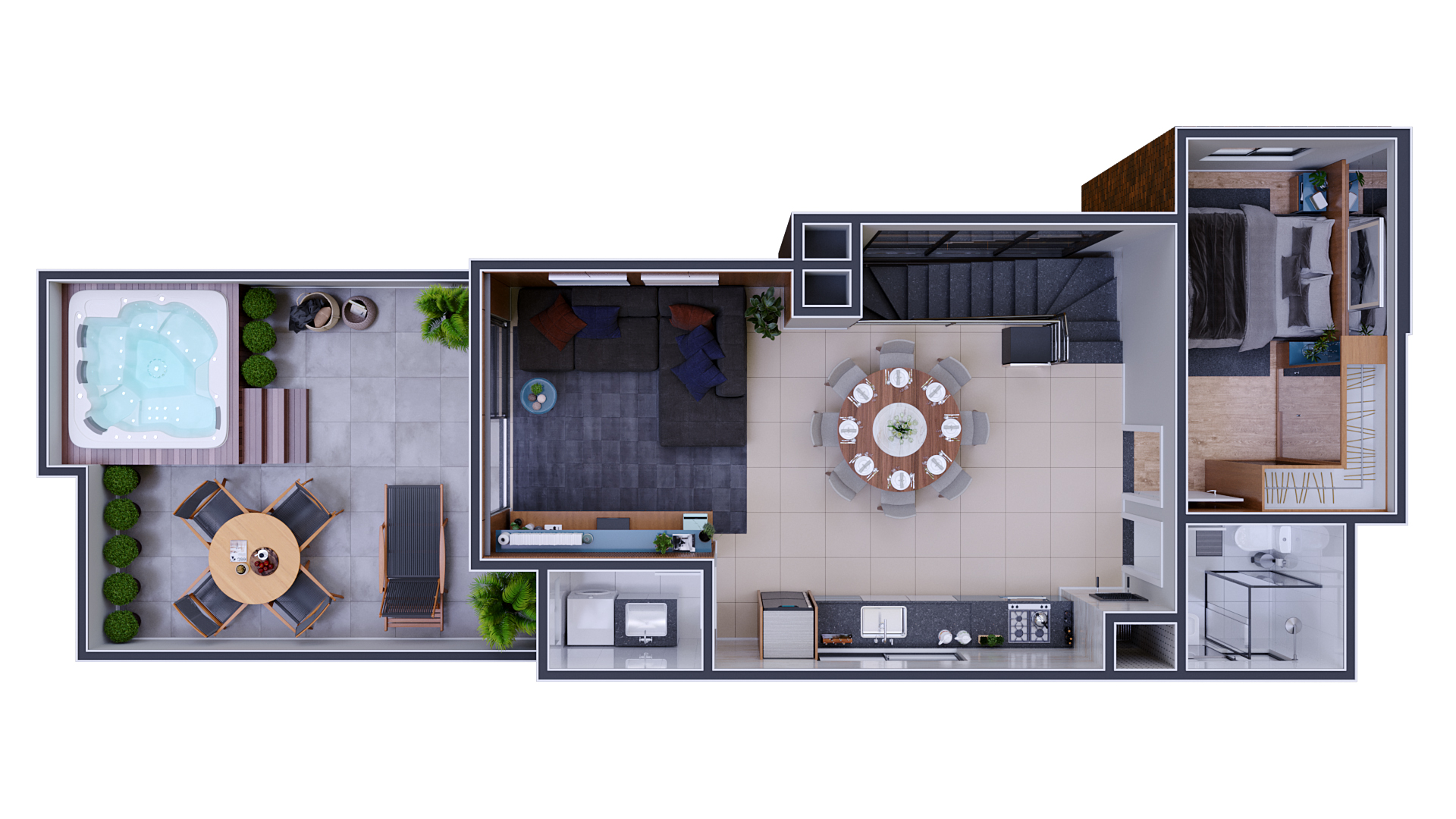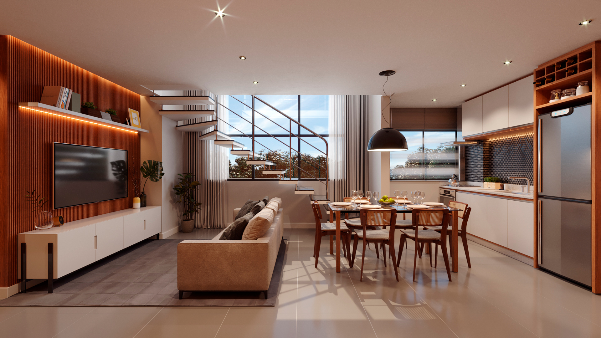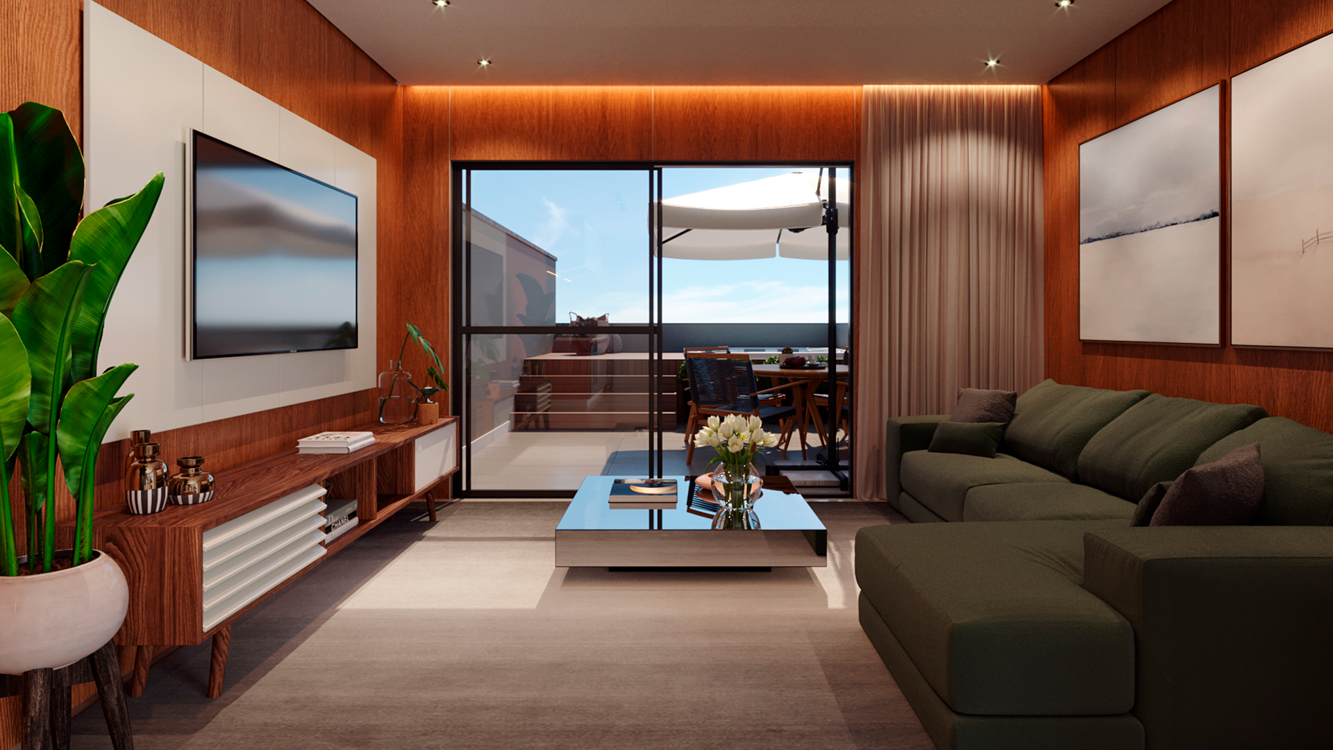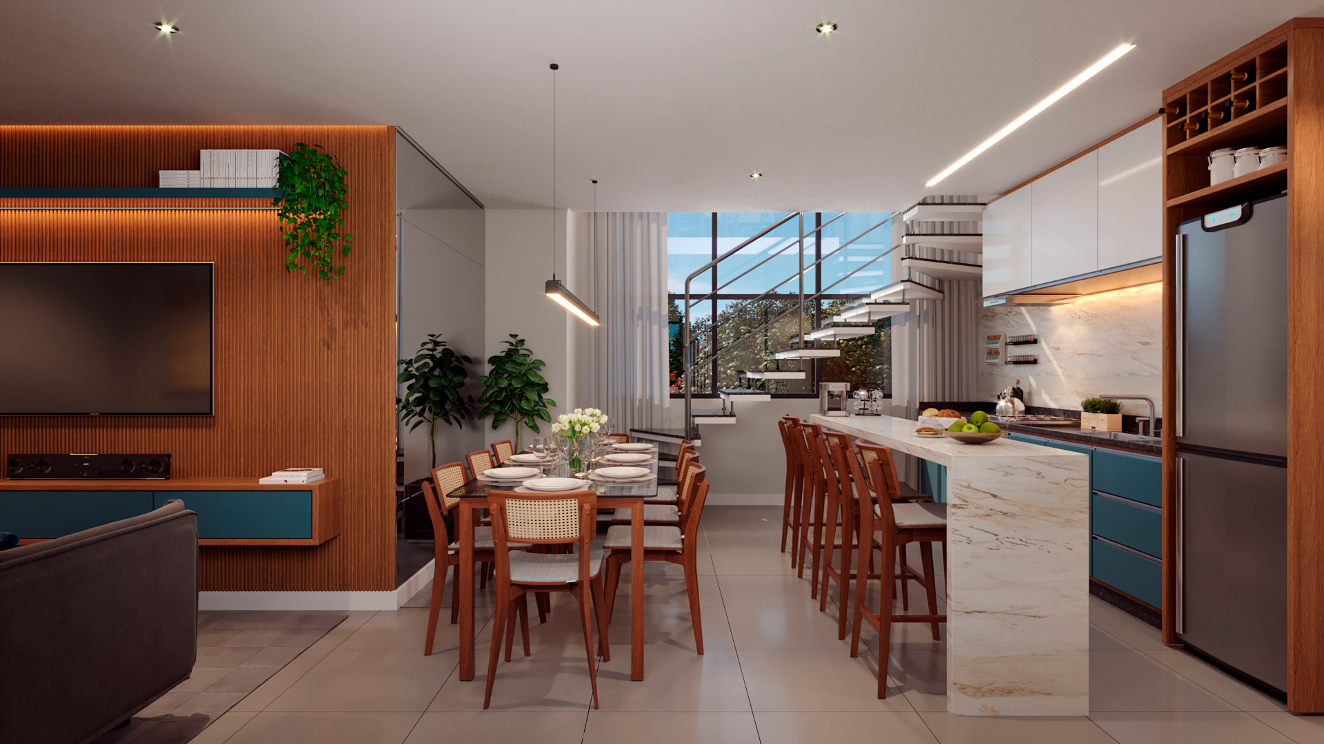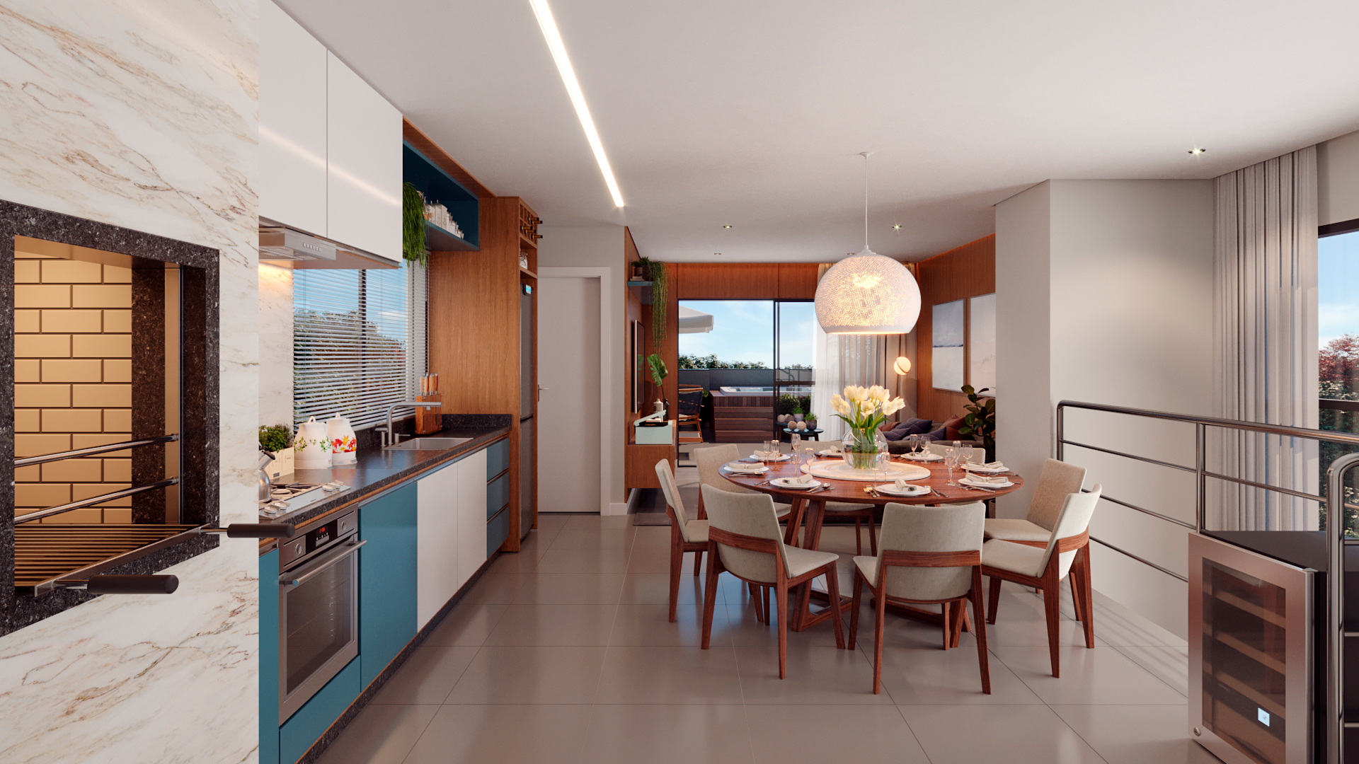 1 Cobertura Duplex com 4 quartos (1 suíte), espaço gourmet com churrasqueira, terraço descoberto e 3 vagas de garagem